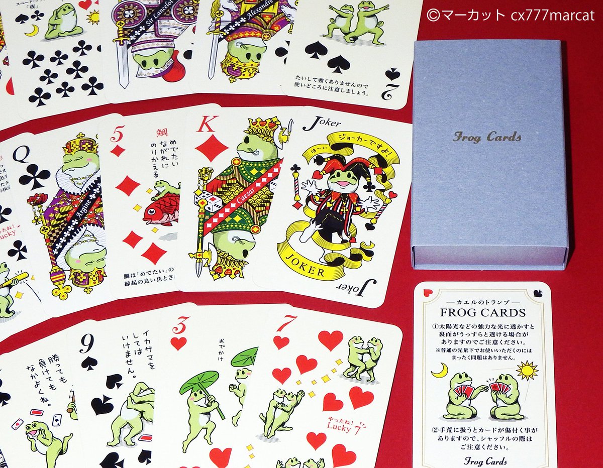 Uzivatel 小川聡 マーカット Na Twitteru 18年自分が選ぶ今年上半期の4枚 カエルのトランプ 蛙銀行券8ケロ 蛙折り紙 Lineスタンプなど トランプの絵札のモデルや豆知識などを色々と調べ 印刷の裏写りなどを計算しながら54種類の絵柄を描いたのが一番苦労